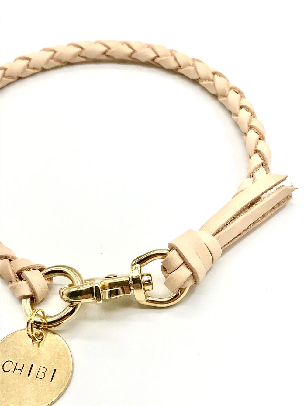 真鍮ネームタグ付き首輪、ネックレス 26色 ナチュラルヌメ革レザー