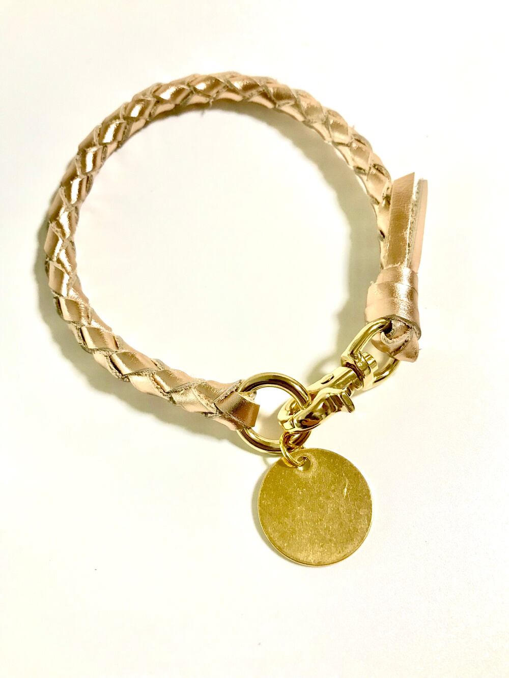 真鍮ネームタグ付き首輪、ネックレス ピンクゴールド 革レザー