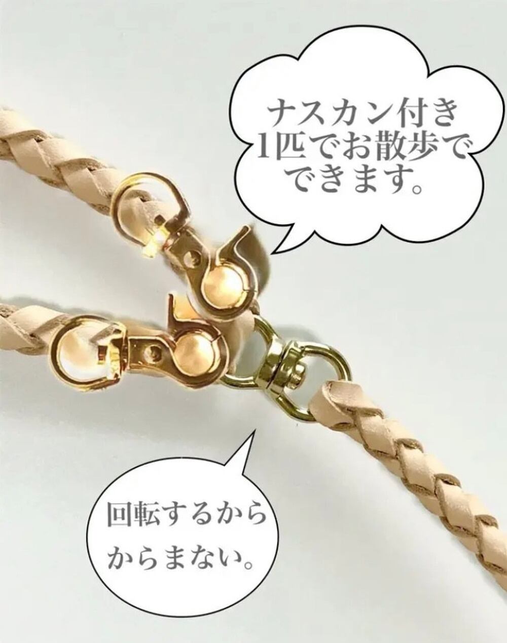❤︎回転カンにナスカンで留めますと100cmほどの長さのリードになります。